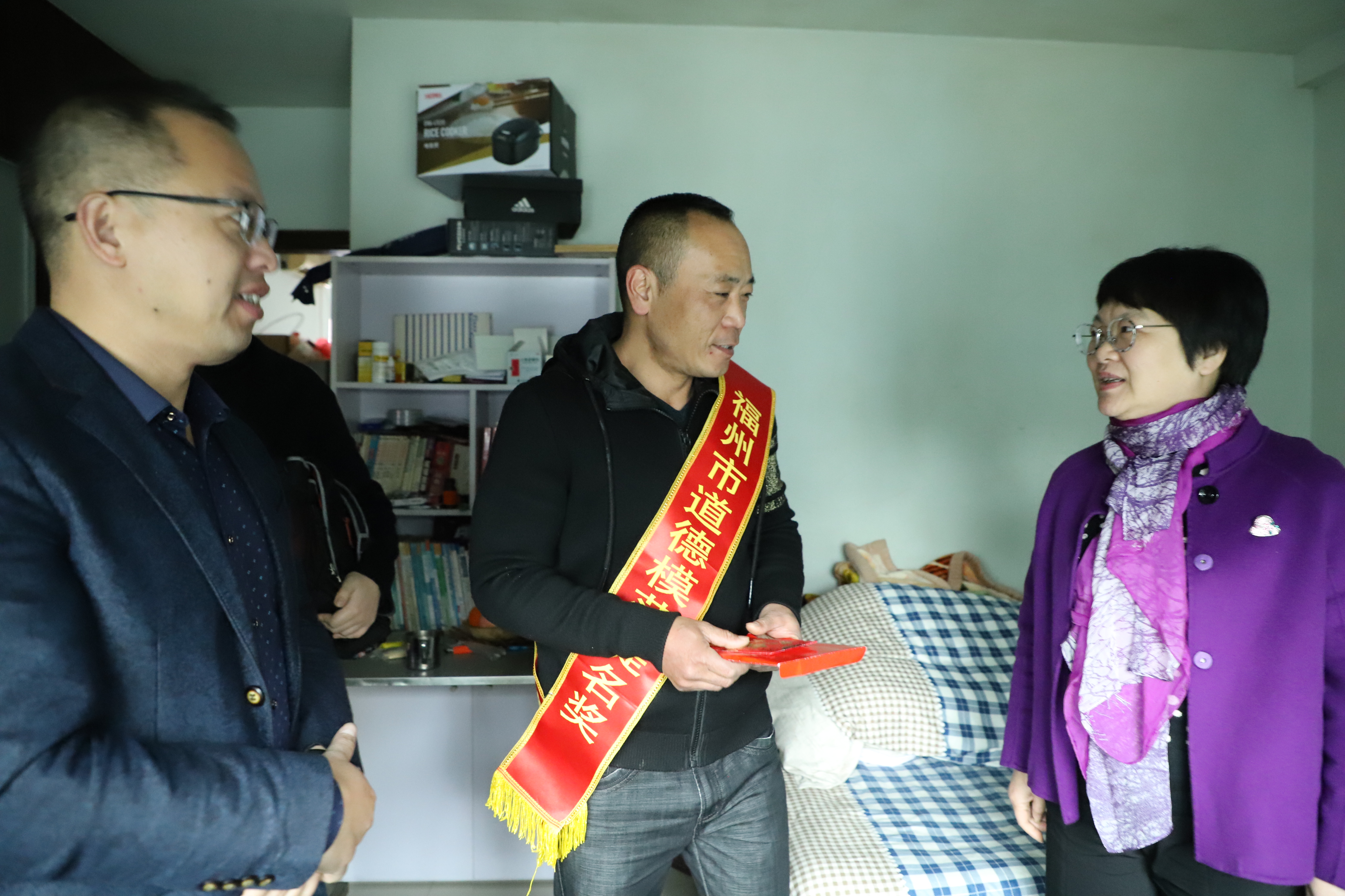慰問當天,慰問組一行先后深入福州市首屆道德模范李香香、福州市第六屆道德模范提名獎林端峰家中,與他們拉家常、噓寒問暖,詳細了解他們目前的生活和家庭情況,并送去幫扶慰問金和新年的問候,叮囑他們保重身體,勉勵他們繼續發揮道德榜樣示范作用,傳遞社會正能量,弘揚時代新風。
