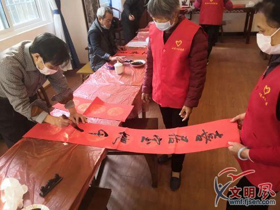 志愿者寫春聯(lián),為居民送去新春祝福。(鳳山社區(qū)供圖)