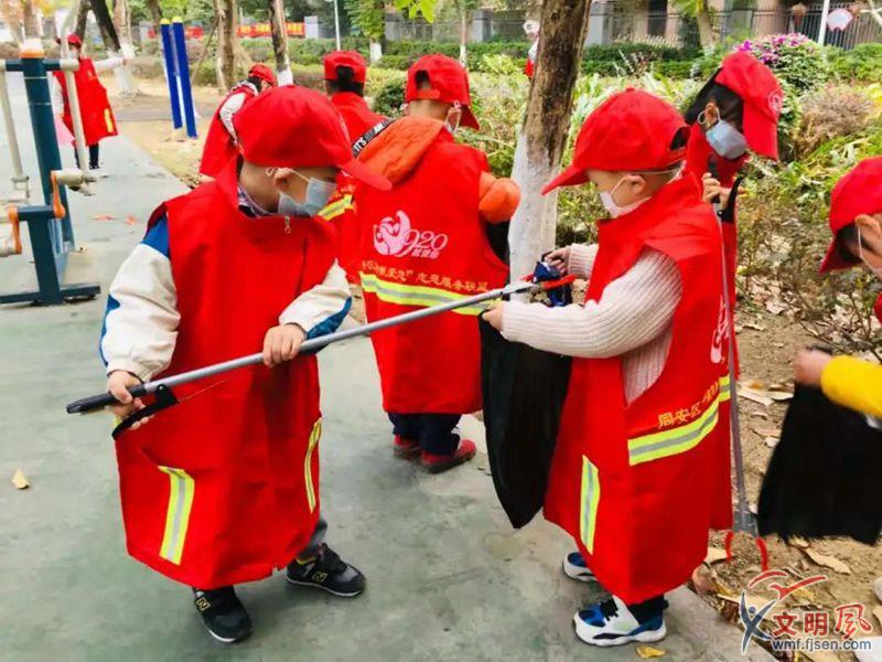 1月23日上午9點,同安區(qū)的志愿者們熱情高漲。在蕓溪社區(qū),同安區(qū)實驗幼兒園的教師和小朋友身穿紅馬甲,正在清掃路面。他們有的拿掃把打掃,有的用長柄夾撿取垃圾,還有的負責拿垃圾袋。