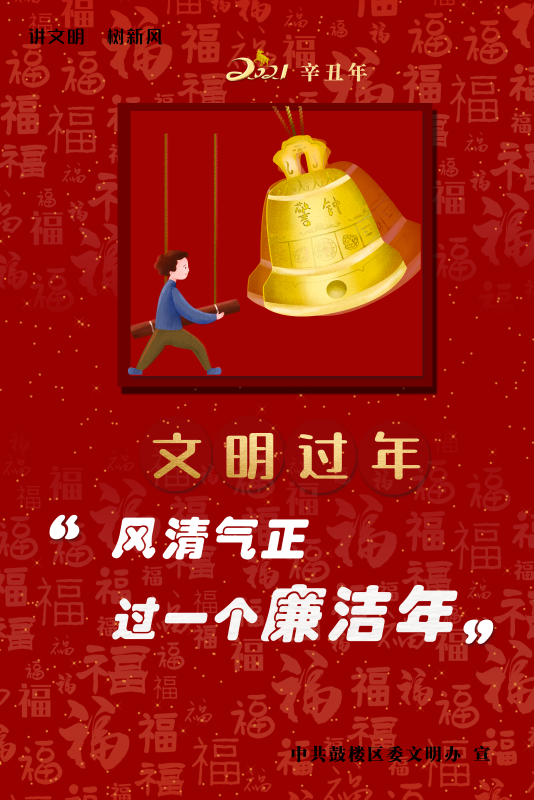 文明風1月26日訊(通訊員吳芳 /圖文)面對新冠疫情,為過好2021年春節,福建省福州市鼓樓區委文明辦用文明引導就地過年,推出公益“文明過年”主題年畫報,畫中有“話”,用心留人,以情動人,以文明城市呼喚文明市民一起:就地過年、健康過年、文明過年、廉潔過年、暖心過年、平安過年!引導廣大市民群眾共同行動起來,筑牢疫情群防群控、群策群治的堅實防線,一起過一個祥和、平安的新春佳節。(鼓樓區委文明辦)