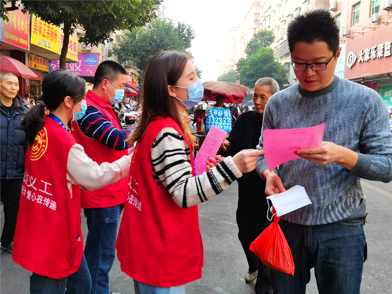 每次活動前,義工協(xié)會會長肖雄耀都會就活動具體分工進行詳細安排。在市場出入口值守的義工志愿者,有的負責測量體溫;有的拿著口罩,分發(fā)給未佩戴口罩的市民和一些戴著重復使用已經破舊了的口罩的老人;有的幫助糾正口罩佩戴有誤的市民正確佩戴;有的在市場入口督導交通,對不文明停車等行為進行勸導,維護市場交通秩序。并安排志愿者深入市場及周邊,分發(fā)疫情防控倡議書,宣傳防疫知識,對未佩戴口罩的商戶進行勸導等。