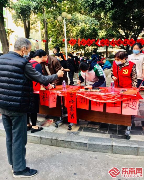 文明風2月8日訊(通訊員 蔡曉婷)春節臨近,為弘揚傳統文化,增添節日氣氛,2月7日,廈門市湖里區金山社區攜手琴島花園小區黨支部、業委會、開心社工、老少書法志愿者,在琴島花園小區中庭開展“筆墨縈金山,祝福聚琴島”迎新春主題志愿服務,營造濃濃的小區新春氛圍,讓小區居民感受到家的溫暖。