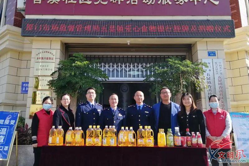 現場,市市場監督管理局捐贈一批食品。廈門市市場監督管理局市局機關黨委四級調研員王建、食品流通處四級調研員洪文旭,同安區市場監管局食品科長郭永朋,五顯鎮黨委組織委員蓋永鋒,社事辦負責人鐘姝巧,社區黨支部書記張榮玲等領導出席掛牌和捐贈儀式。