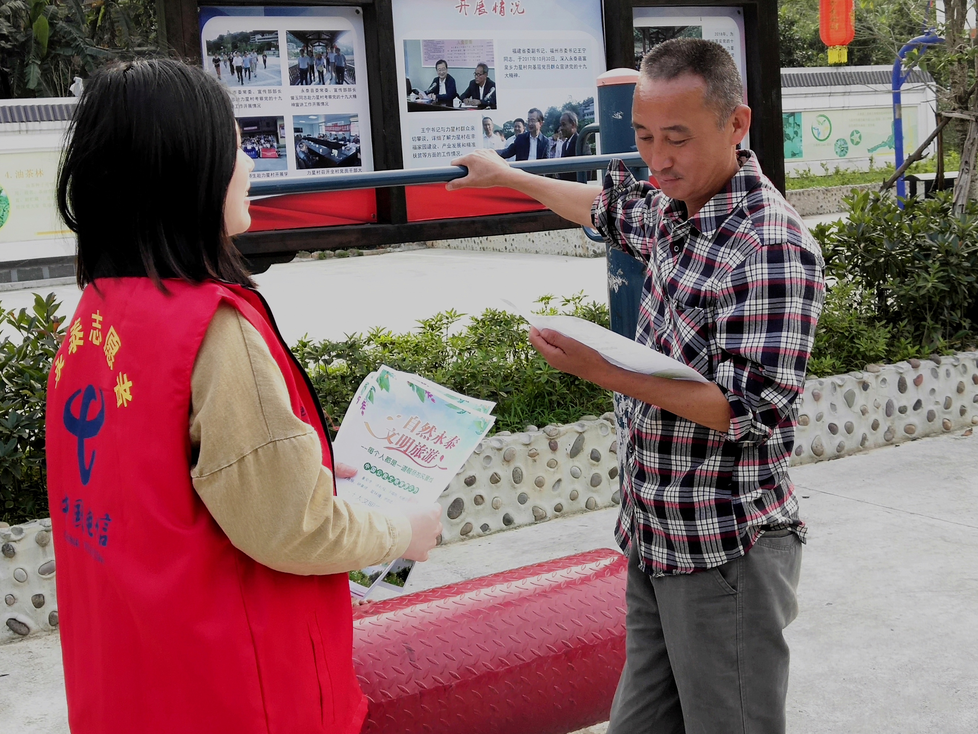 志愿者向旅客宣傳文明旅游 永泰縣文明辦供圖