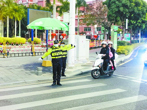 春節假期里,在同安熱門景區交通要道,廈門市義務交警隊同安分隊隊員的身影隨處可見。夏海濱攝