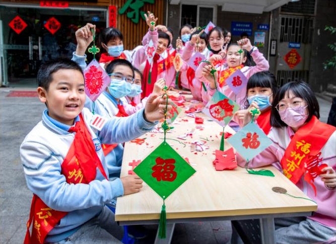 孩子們展示剪紙作品 臺江區委文明辦供圖