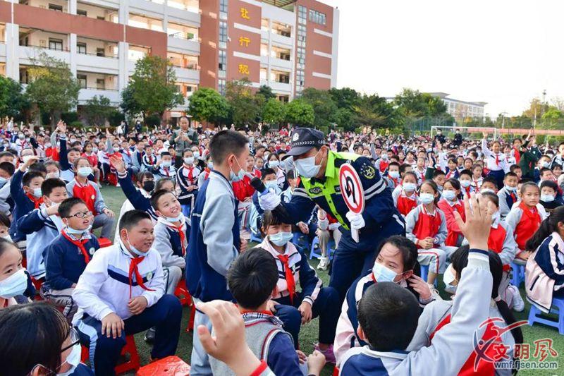 除了授課,當天下午,義務交警隊同安分隊還帶來了交通安全手勢操表演等節目。其中,關于交通標識的現場搶答環節,頗受學生歡迎,整個西塘小學操場迎來一波又一波的搶答熱浪。學生一答一個準,將活動氛圍推向高潮。