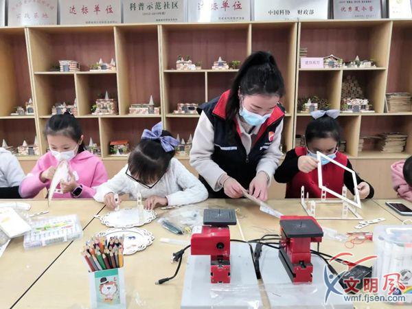 孩子們在社工的指導下制作花燈。(江村社區(qū)供圖)