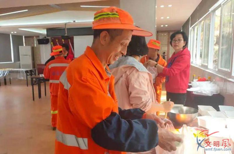 南山社區(qū)共享職工之家心系環(huán)衛(wèi)工人群體,為他們送上湯圓。(湖里區(qū)委文明辦供圖)