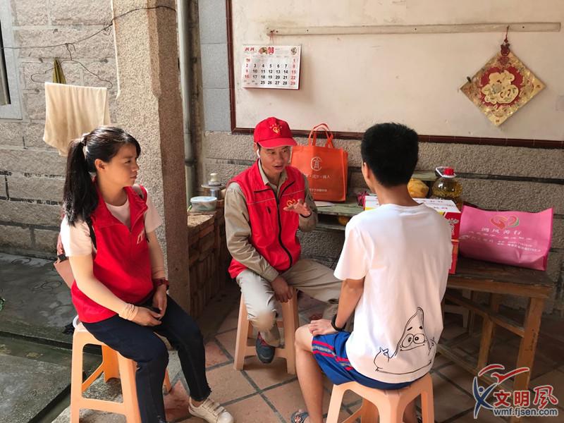 林清江(中)入戶幫扶貧困學生(翔安區委文明辦供圖)
