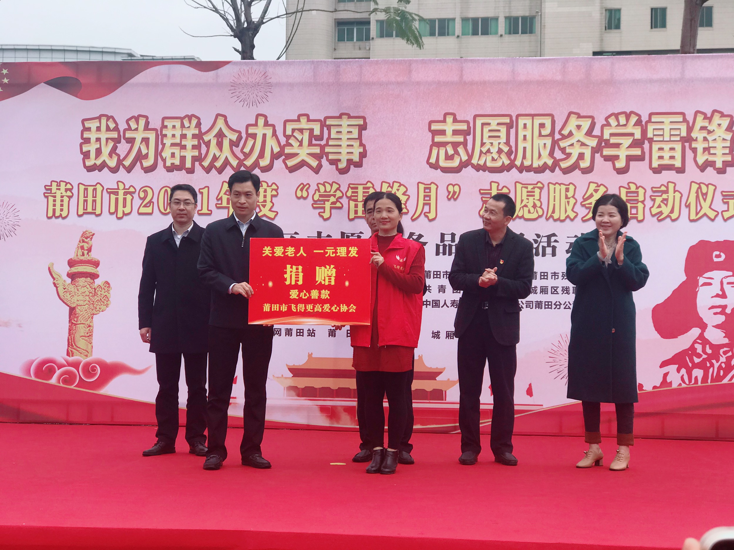 活動現(xiàn)場,城廂區(qū)委常委、宣傳部長蘇德權(quán)為莆田市飛得更高愛心協(xié)會捐贈愛心善款;市委文明辦領導為“一元理發(fā)”愛心商家頒發(fā)“尊老助殘 一元理發(fā)”牌匾;中國人壽保險股份有限公司莆田分公司副總經(jīng)理黃華榮為城廂區(qū)志愿者協(xié)會頒發(fā)站點建設捐贈款;市委文明辦和市相關部門的領導為愛心企業(yè)頒發(fā)牌匾。