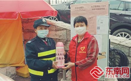 徐若梅為疫情防控崗位工作人員送姜茶(集美·誠毅志愿者聯盟供圖)