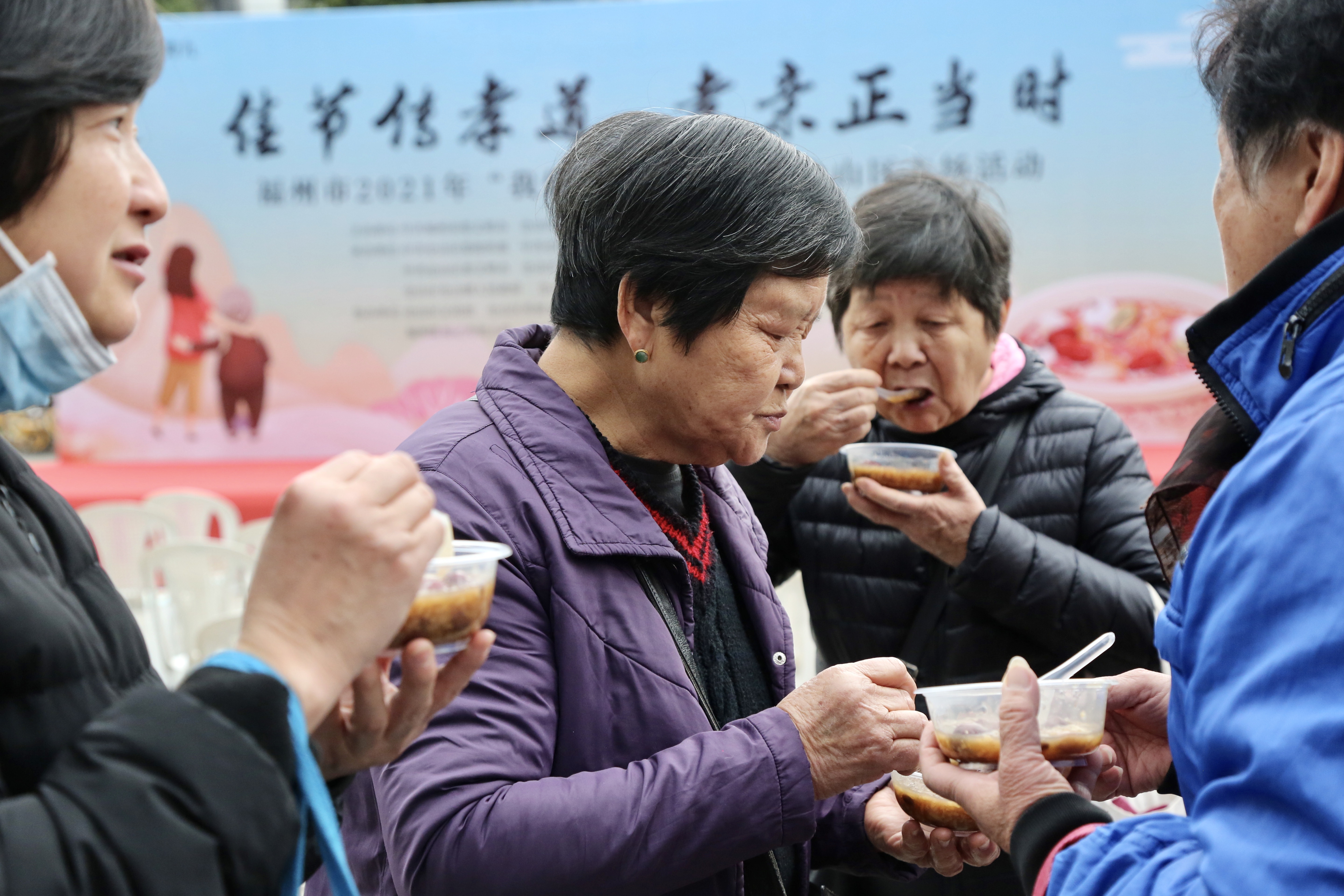 老人們喝著香甜的拗九粥 倉山文明辦供圖