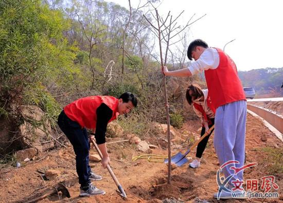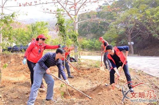 文明風3月14日訊(夏菁 洪繼鏗)又是一年芳草綠,植樹增綠正當時。3月12日上午,廈門翔安鴻山村聯合廈門港務集團、翔安監獄、內厝青創會等單位近200名志愿者,為正在提升改造的鴻漸山森林公園增添新綠。