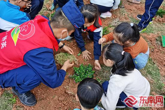 掄鎬刨坑、扶送樹苗、鏟土填坑、提桶打水……從室內走向戶外,蓮亭、孫厝、溪西、崎溝等新時代文明實踐站則將課堂開在了田間地頭、小區空地上,組織青少年志愿者實地種植綠植,更在孩子們心中種下了一抹綠。