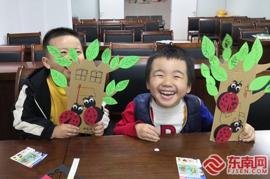 孩子們變廢為寶,動手制作“大樹”。(港頭社區新時代文明實踐站供圖)