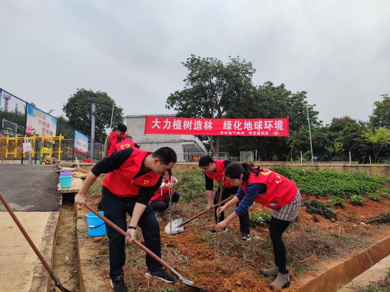 “大力植樹造林 綠化地球環境”植樹造林活動 (華安縣氣象局供圖)