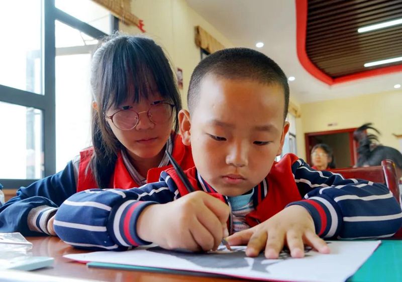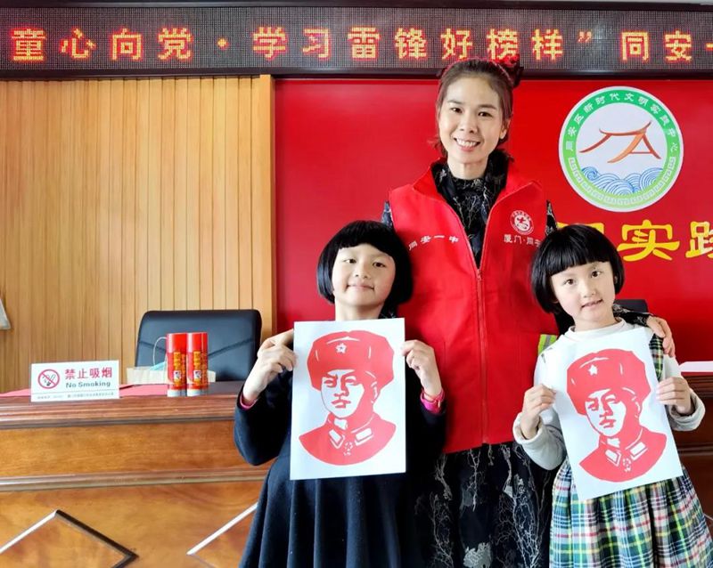 孩子們用刻刀刻雷鋒肖像。(同安區委文明辦供圖)