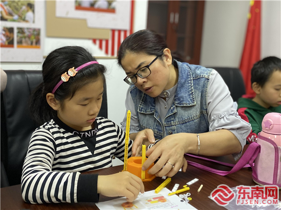 家長(zhǎng)和孩子齊心協(xié)力完成手工 蘇淑女 攝