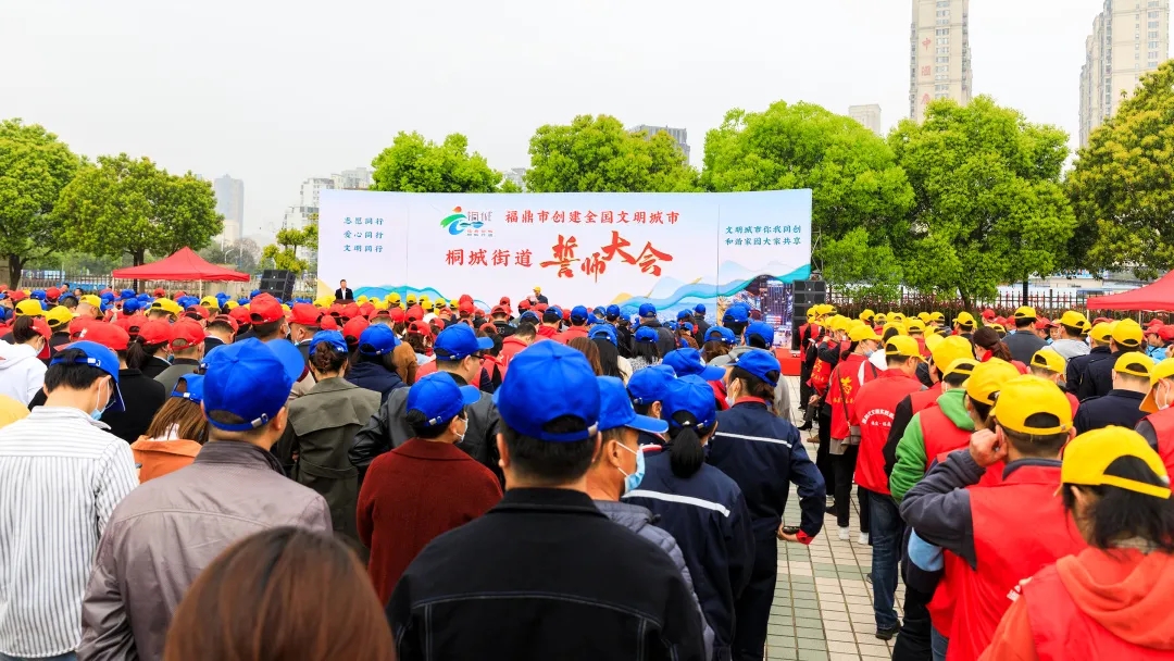 本次活動由桐城街道黨工委副書記、辦事處主任詹華壽主持,福鼎市領(lǐng)導(dǎo)張德志、福鼎市創(chuàng)城辦主任張光港出席活動,桐城街道全體黨政領(lǐng)導(dǎo)班子、街道機(jī)關(guān)干部、街道黨員先鋒隊代表、退休干部代表、工商戶代表、居民代表、社區(qū)工作者代表、志愿服務(wù)代表、小區(qū)物業(yè)代表、駐區(qū)單位代表等近千人參加誓師大會。