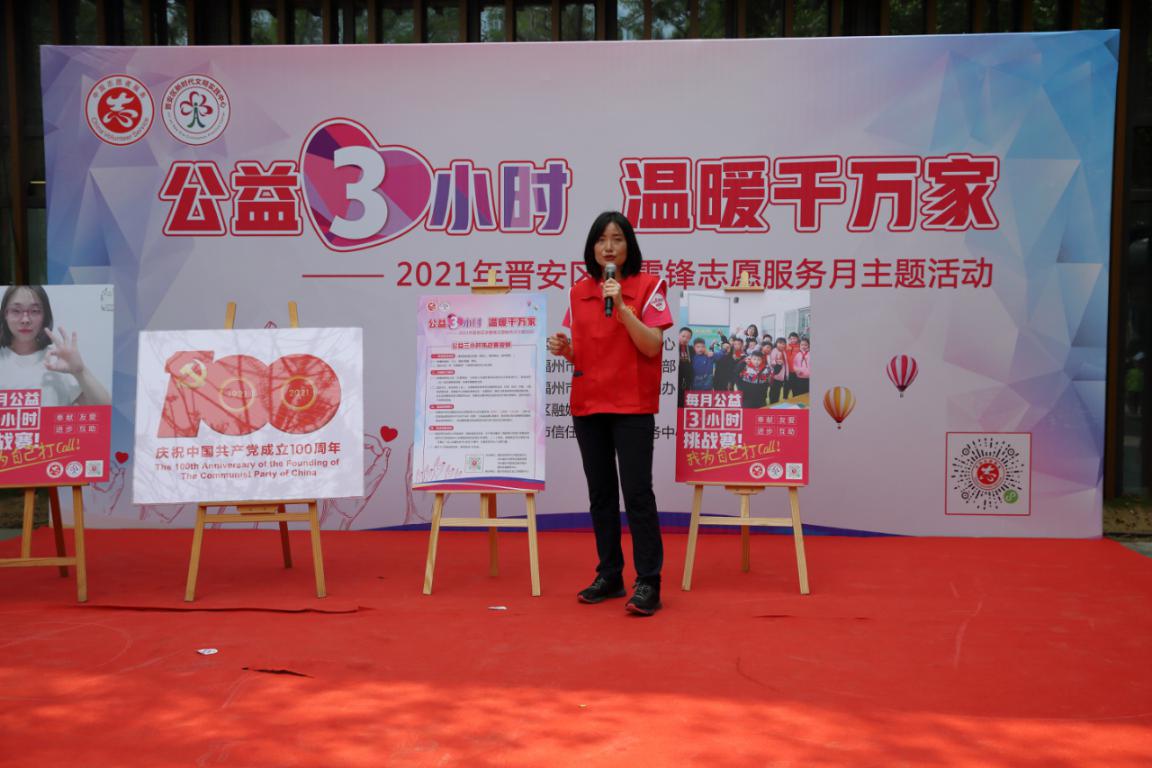 文明風3月31日訊(通訊員黃蕾)為持續弘揚雷鋒精神,推動“溫暖晉安”專項行動,獻禮建黨100周年,3月30日上午,由晉安區新時代文明實踐中心、中共福州市晉安區委宣傳部、中共福州市晉安區委文明辦、晉安區融媒體中心主辦,福州市信任社會工作服務中心承辦的“公益3小時·溫暖千萬家”——2021年晉安區學雷鋒志愿服務月主題活動啟動儀式在晉安區新時代文明實踐中心舉辦。