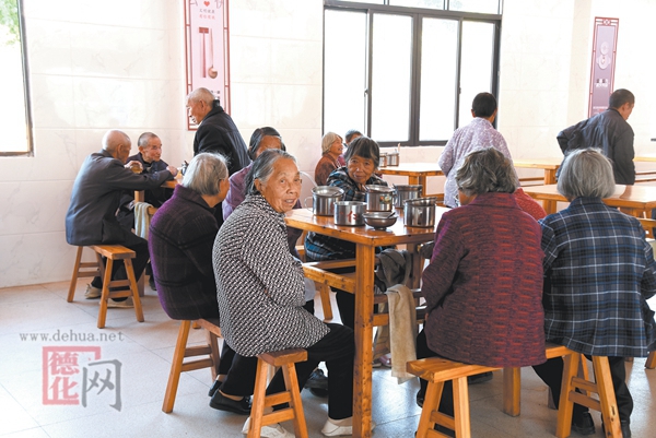英山村老人在愛心廚房等待就餐。圖源:瓷都德化報(bào)