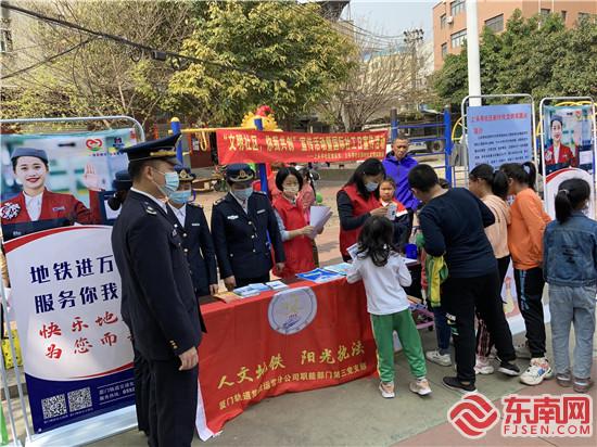 此外,活動還以互動問答的方式向居民就垃圾分類、文明交通、文明餐桌等知識進行有獎互動問答;廈門地鐵執法四中隊的工作人員則向居民發放地鐵宣傳冊,介紹軌道交通安全等內容。