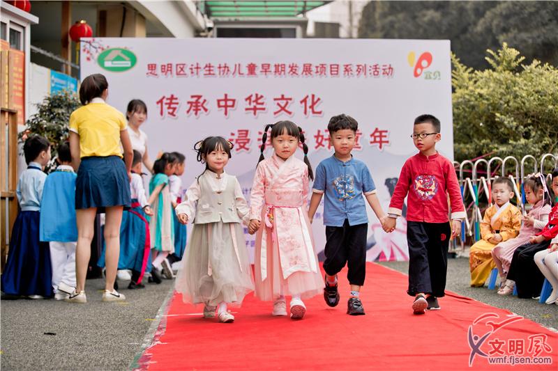 文明風4月13日訊(記者 盧超穎 通訊員 陳聰)日前,廈門市思明區蓮成社區居委會、新時代文明實踐站和計生協攜手轄內宜貝幼兒園開展了以“傳承中華文化,浸潤美好童年”為主題的漢服秀親子文化活動,160余位孩子們身穿漢服走在紅毯上,展示滿滿元氣。