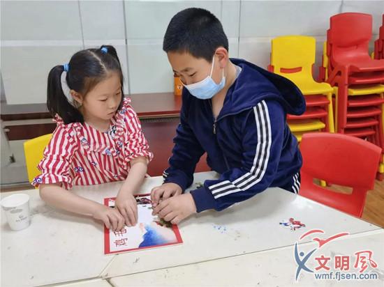 孩子們一起完成拼圖《雞毛信》(翔安區委文明辦供圖)
