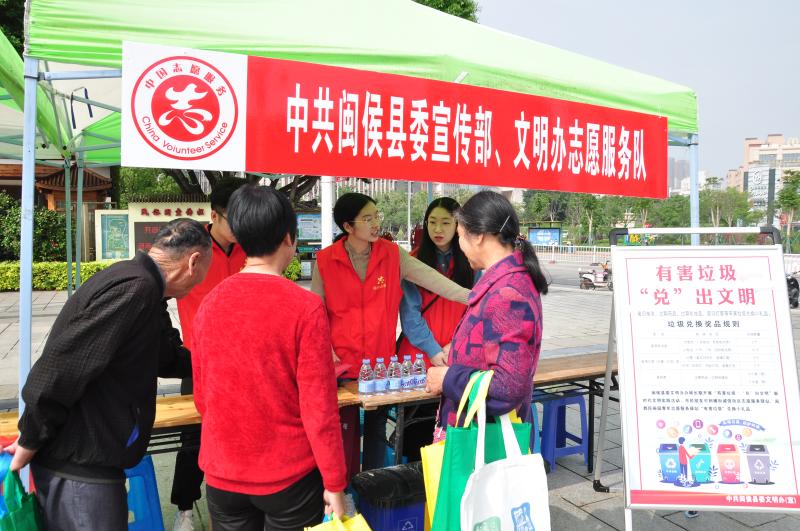 縣委宣傳部、縣文明辦志愿者在宣傳有害垃圾的種類(lèi) 閩侯文明辦供稿