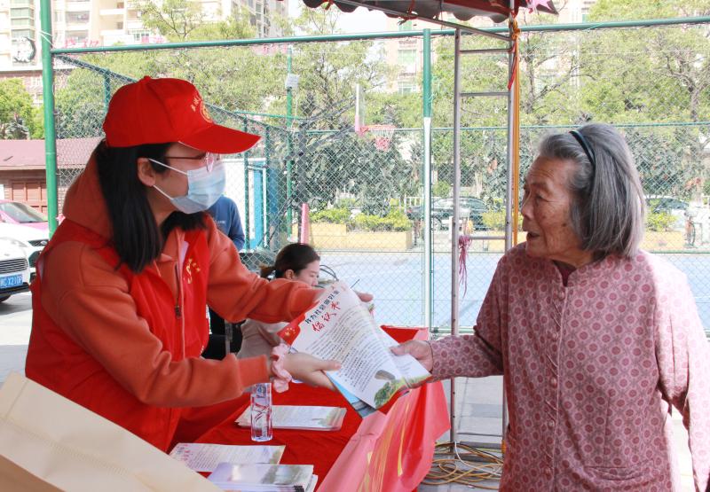 志愿者分發《我為社會辦實事倡議書》(泉港區委文明辦供圖 陳燕燕攝)