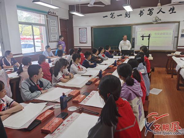 “大手拉小手,書黨史跟黨走”書法培訓(xùn)活動(dòng)走進(jìn)蓮花中心小學(xué)。(蓮花鎮(zhèn)供圖)