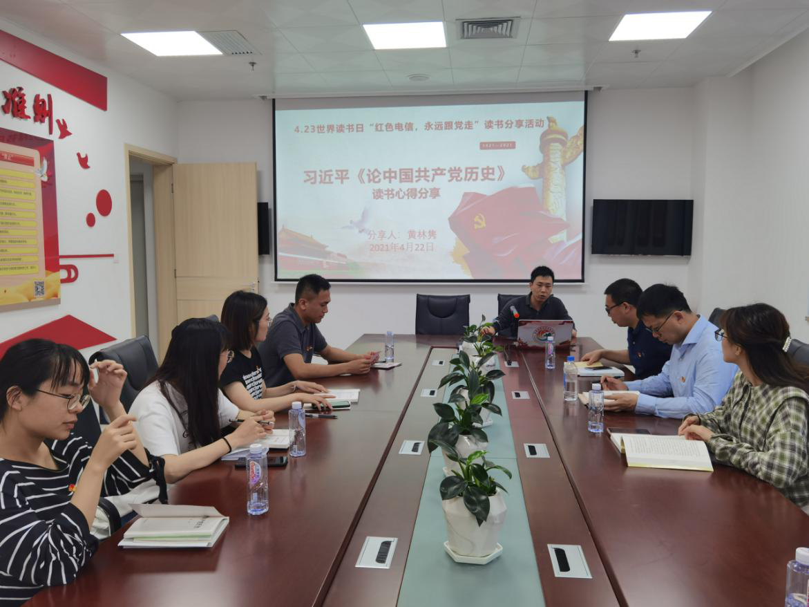 黨史專題講座后,現場進行了紅色書籍及黨史學習心得分享,黨員代表結合個人學習工作實際,分享了黨史學習指定書目《論中國共產黨歷史》、《中國共產黨簡史》等學習心得,充分交流其中蘊含的歷史意義和時代價值。現場還推薦了《習近平講故事》等書籍。各支部黨員代表還以接力誦讀的方式一起學習了《論中國共產黨歷史》部分篇章。