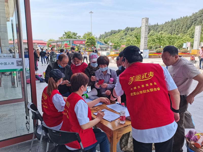 五一志愿者在高鐵站出口 武夷山市委文明辦供圖