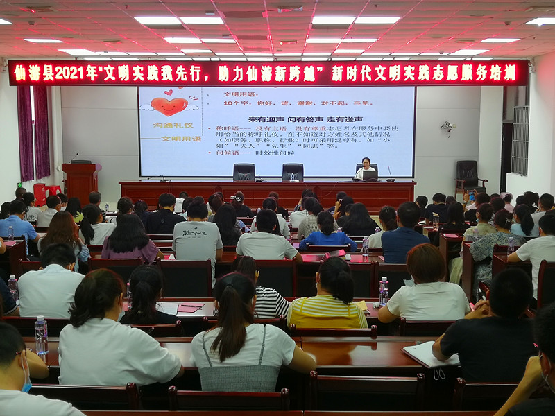 文明風5月20日訊(通訊員 林懷義 岳文杰 文/圖)5月20日上午,中共仙游縣委文明辦、仙游縣志愿者協會聯合舉辦仙游縣2021年“文明實踐我先行,助力仙游新跨越”新時代文明實踐志愿服務專題培訓。全縣部分省、市、縣級文明單位新時代文明實踐志愿者,各鄉鎮(街道)新時代文明實踐志愿服務工作負責人,以及各有關公益組織負責人等共約130多人參加了培訓會。縣委文明辦二級主任科員林福勇主持培訓會。