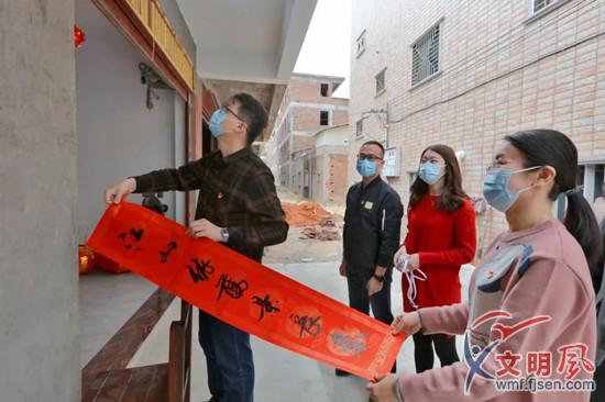 區委辦黨支部來到小陳新家貼對聯、掛福字。 朱毅力 攝