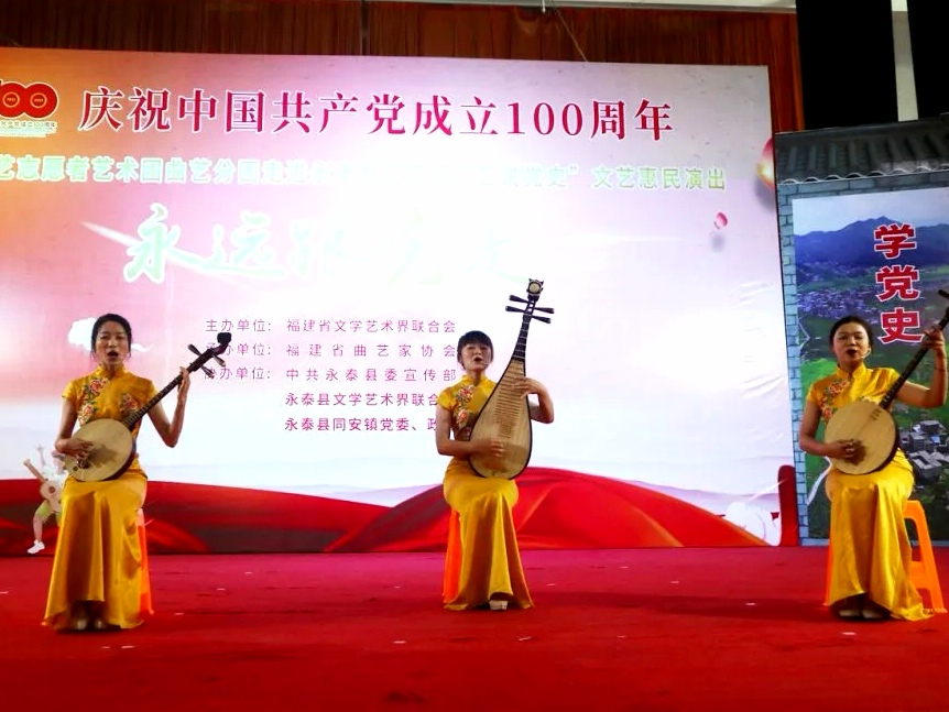 “七溜八溜 不離福州……”5月20日,福建省文藝志愿者藝術(shù)團(tuán)曲藝分團(tuán)走進(jìn)永泰縣同安鎮(zhèn),開(kāi)展慶祝中國(guó)共產(chǎn)黨成立100周年“藝說(shuō)黨史”文藝惠民演出活動(dòng),文藝工作者們以載歌載舞等文藝匯演的形式,攜手為生活在這里的老人們送上一場(chǎng)豐盛的“文藝大餐”,共同學(xué)習(xí)中國(guó)共產(chǎn)黨百年奮斗的光輝歷史,歌頌黨對(duì)全國(guó)人民的恩情。