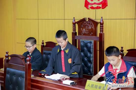 黃厝小學的同學們正在舉行模擬法庭(翔安區委文明辦供圖)