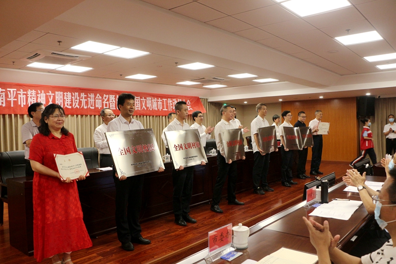 文明風5月28日訊(通訊員 鄭正華 肖練冰)5月27日,南平市精神文明建設先進命名暨創建全國文明城市工作動員大會召開。大會旨在深入學習貫徹習近平總書記來閩考察重要講話精神以及中央、全省精神文明建設表彰大會精神,深入推進黨史學習教育和“再學習、再調研、再落實”活動。會議通報南平市獲得全國、省級先進名單,宣讀《南平市2018—2020年度市級文明縣城(城區)、文明村鎮、文明單位、文明校園、文明家庭命名決定》。