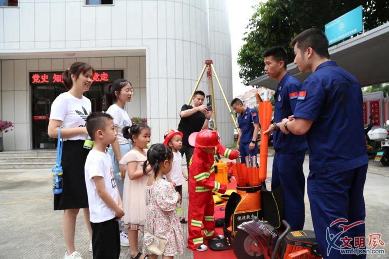 戴上頭盔,穿上消防服,都是小小消防員。5月29日,共青團廈門市委、同安區政府辦、廈門市同安區消防救援大隊開展黨團共建活動,聯合舉辦“消防隊里的兒童節”暨消防安全教育活動。