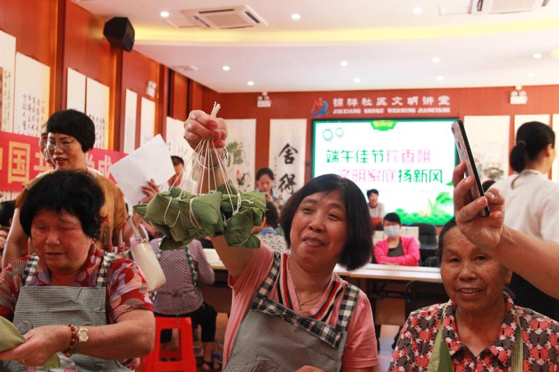 群眾展示她包的粽子(泉港區(qū)委文明辦供圖 陳燕燕攝)