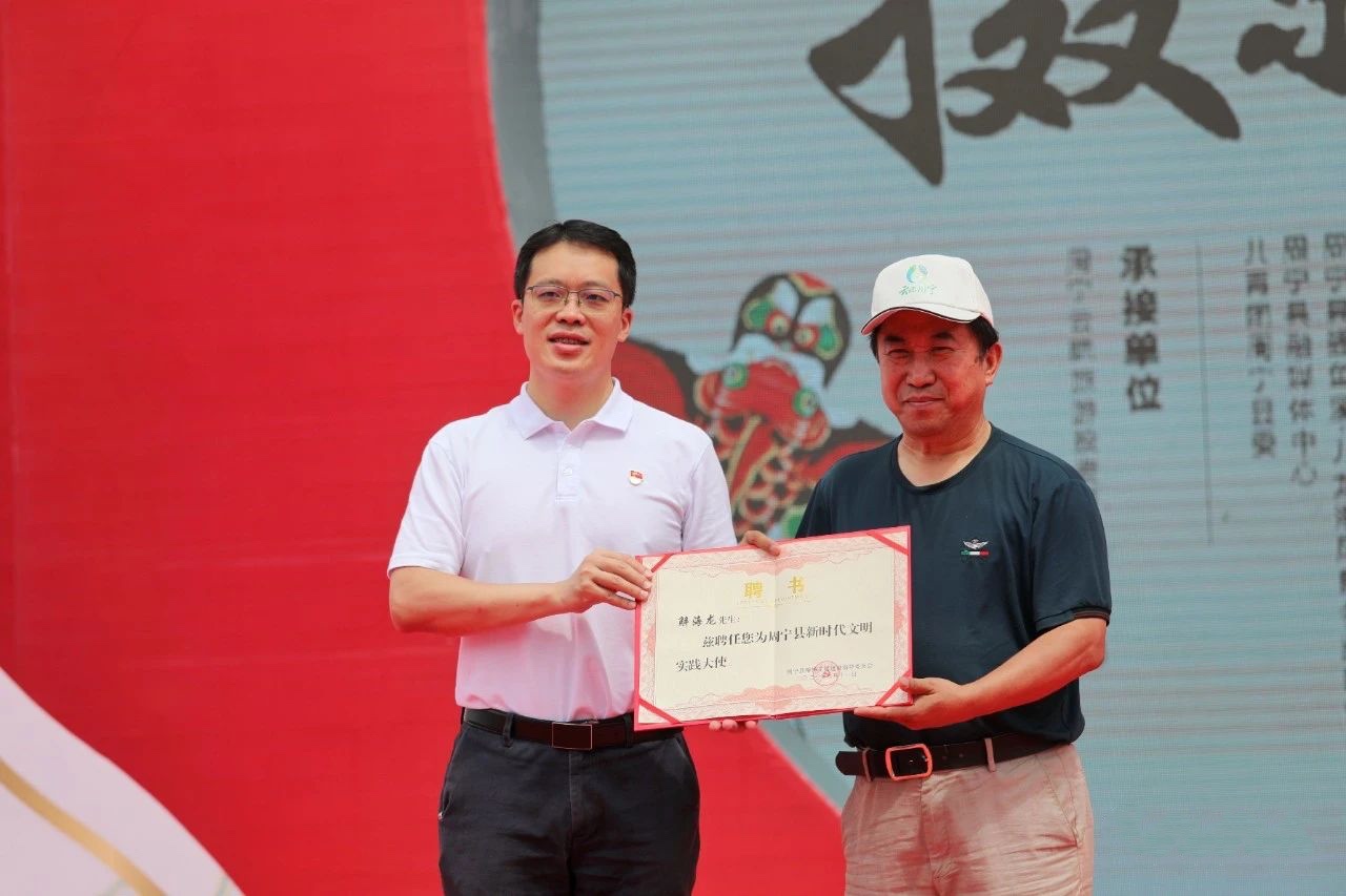 文明風6月15日訊 (通訊員阮愛清)為扎實推進新時代文明實踐中心試點縣建設,宣傳展示周寧形象,6月11日,在周寧縣舉辦的“閩東之光·云端周寧”全國攝影大展暨風箏節啟動儀式上,中國攝影家協會黨組成員、副秘書長、著名攝影家解海龍被聘任為周寧縣新時代文明實踐大使。周寧縣委副書記、縣長黃桂誠為解海龍頒發聘書。