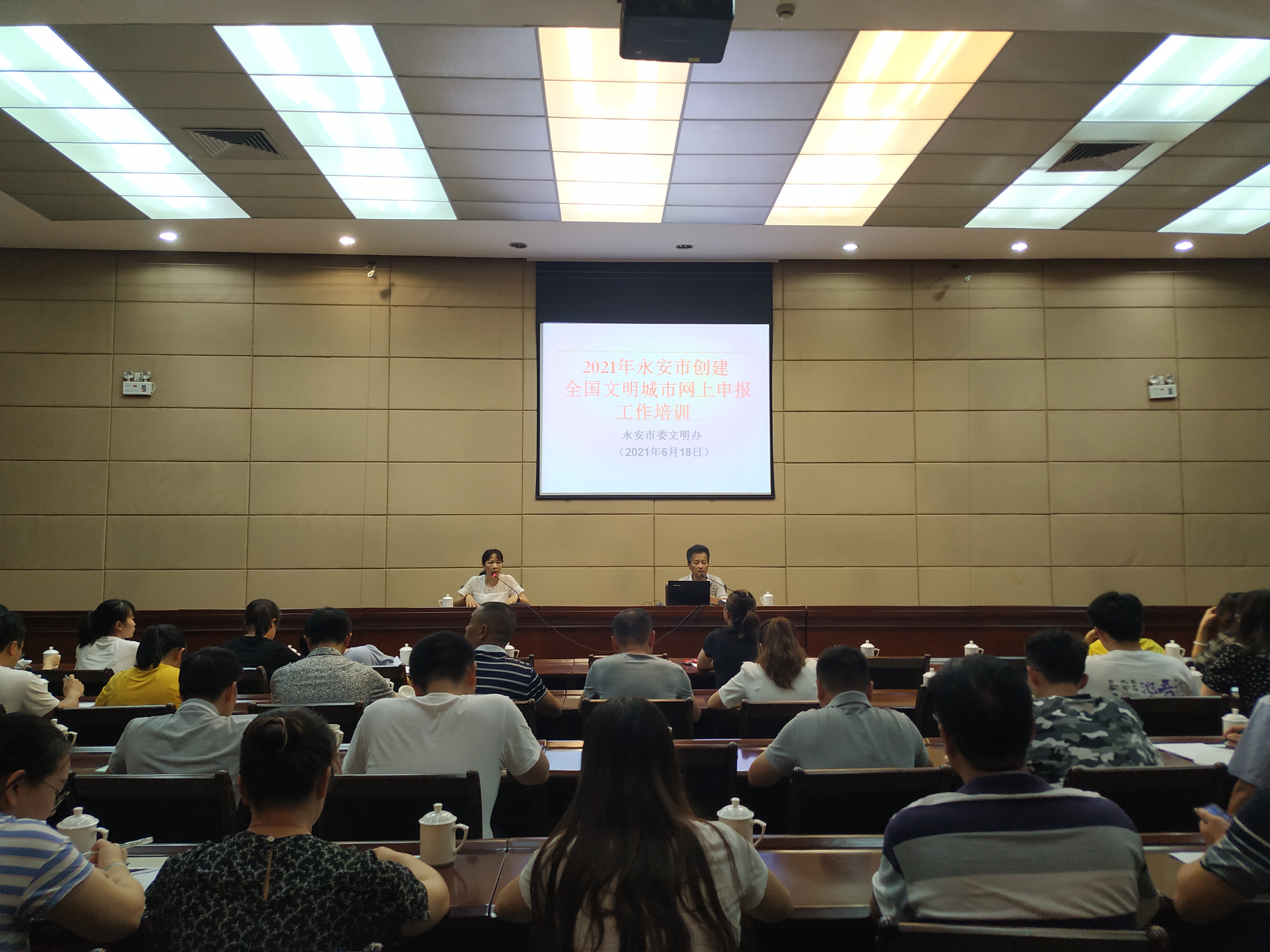 文明風(fēng)6月18日訊(通訊員劉小青)6月18日下午,永安市委文明辦召開(kāi)2021年創(chuàng)建全國(guó)文明城市網(wǎng)上申報(bào)工作培訓(xùn)會(huì),對(duì)參與文明城市創(chuàng)建的15個(gè)鄉(xiāng)鎮(zhèn)、街道,市直48個(gè)有關(guān)部門(mén)單位聯(lián)絡(luò)員進(jìn)行集中培訓(xùn),安排部署網(wǎng)上申報(bào)材料的收集申報(bào)工作。