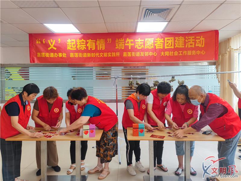 文明風6月18日訊(記者 盧超穎 通訊員 蔡淑嵐)在端午節來臨之時,慶賀建黨百年華誕之際,為營造濃厚的節日氣氛,傳承傳統民俗文化,加強志愿者對社區服務的歸屬感和凝聚力,充分發揮志愿者黨建引領作用,廈門市思明區嘉蓮街道文明實踐所社工借由端午節組織志愿者開展“‘義’起粽有情”志愿者團建活動,通過包粽子、游戲互動等方式感謝志愿者的辛勞付出。