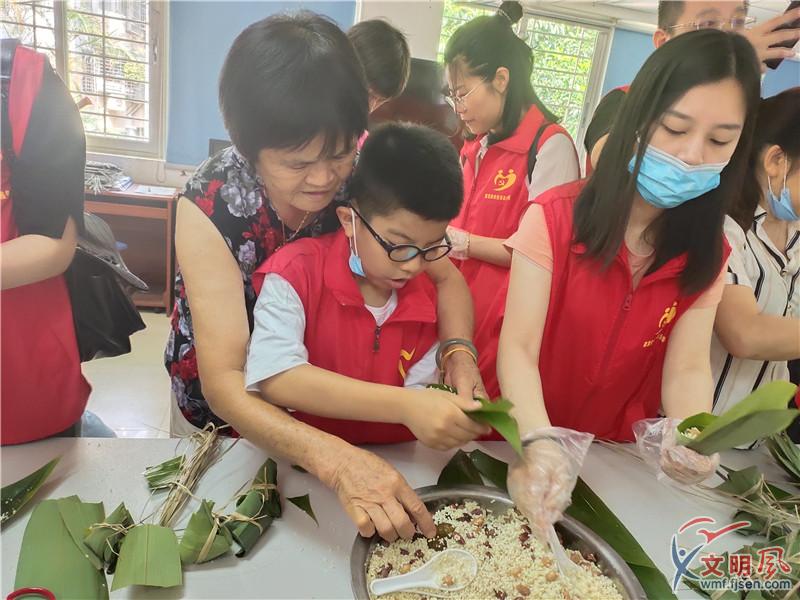 熱心阿姨指導小小志愿者包粽子 顏瑩琪攝
