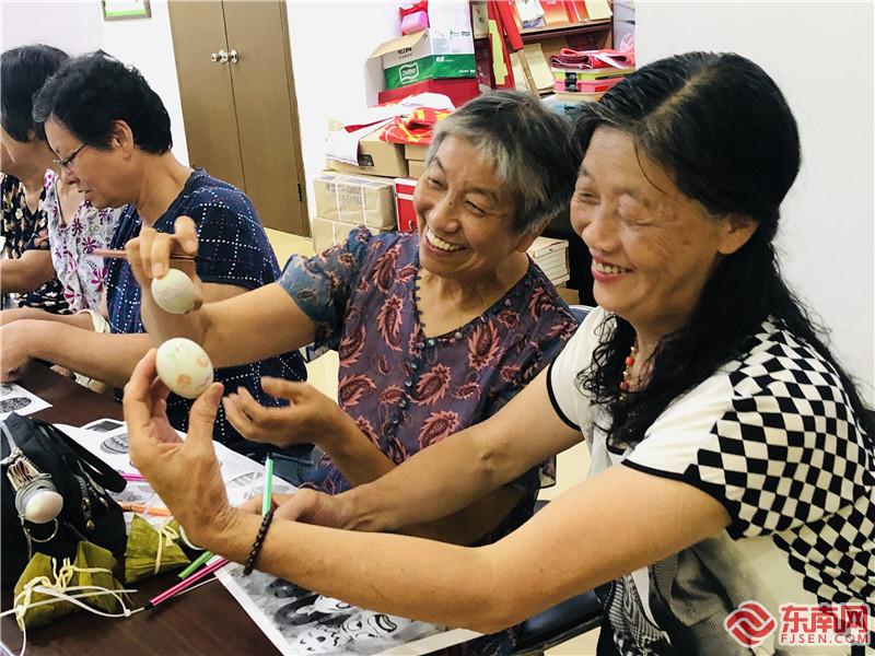 居民體驗繪彩蛋(紡織社區新時代文明實踐站供圖)