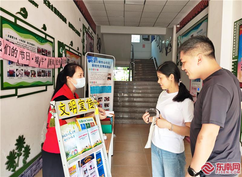 6月10日,鐵山社區新時代文明實踐站開展“粽說文明,舟傳平安”新風宣傳活動,以發放宣傳單頁、口頭講解、游戲體驗等方式,加強居民對垃圾分類、移風易俗、掃黃打非、防臺防汛、防中暑等知識學習;以端午知識、安全知識答題、垃圾分類挑戰及與文明標語同框等互動方式,加深社區居民對文明平安過節的認識。