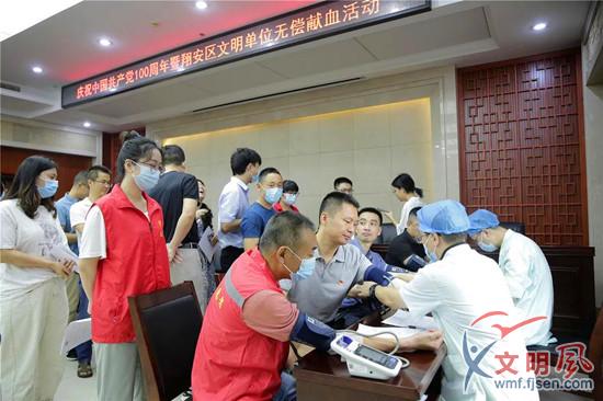 文明風6月29日訊(夏菁 童心悅)為進一步弘揚人道主義精神,促進精神文明建設,結合中國共產黨建黨100周年紀念活動和第十八個“世界獻血者日”活動,6月28日,廈門市翔安區委文明辦、區直機關黨工委、區紅十字會聯合組織“慶祝中國共產黨100周年暨翔安區文明單位無償獻血活動”。此次活動得到了區直機關、文明單位干部職工和廣大志愿者的熱烈響應。