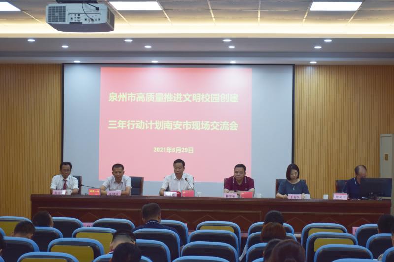 文明風7月2日訊 為進一步推進泉州市高質量推進文明校園創建三年行動計劃,推動文明校園創建活動高質量發展,持續提升文明校園創建活動水平,6月29日上午,泉州市高質量推進文明校園創建三年行動計劃南安市現場交流會,在南安一中江北校區舉行,70多所泉州市級以上文明校園創建學校主要負責人參加活動。