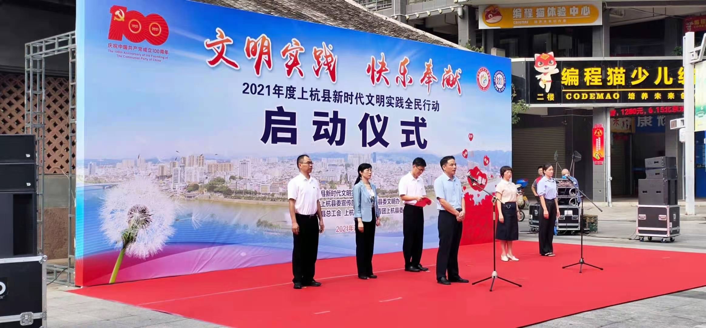 文明風7月7日訊(通訊員龔松連)為培育和踐行社會主義核心價值觀,進一步傳遞社會正能量,培育社會新風尚,推動黨史學習教育、“我為群眾辦實事”活動與新時代文明實踐系列活動深度融合,全面展示上杭縣三年來新時代文明實踐建設成果,讓全縣各級各界廣泛深入參與到新時代文明實踐中來,7月6日上午,“文明實踐 快樂奉獻”2021年度上杭縣新時代文明實踐全民行動啟動儀式在城區瓦子街廣場舉行,縣委常委王堯華參加活動。